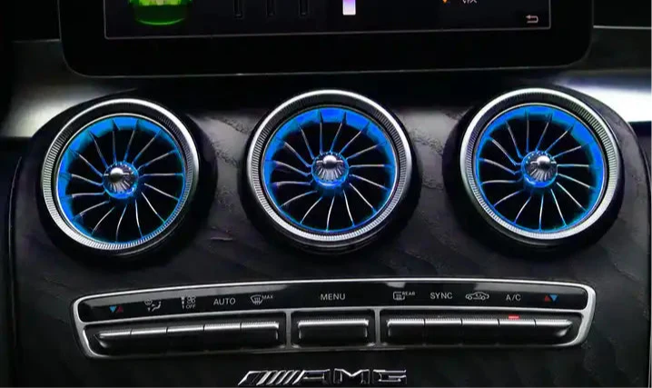 Transform the look and feel of your Mercedes-Benz C-Class W205 interior with these sophisticated turbo-style air vents featuring integrated ambient lighting. Designed to seamlessly blend with your vehicle’s existing interior, these vents add a premium touch, echoing the iconic turbine design seen in luxury vehicles. Crafted for perfect compatibility, they not only enhance your cabin's aesthetics but also improve air circulation.